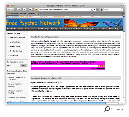 |  | Free Psychic Network Builds a Business as a LivePerson Affiliate In 1997, Fred Gimino was feeling the entrepreneurial urge. Tired of punching a time clock, Fred wondered if he could hang out his own shingle, and earn enough to support his wife and growing family (he has a daughter in college and a son in the fourth grade). Fred had a strong set of skills, including programming, designing, and is a prolific writer (a quick Google search reveals just how prolific he is!). He also had a passion for spirituality, with a lifetime of home learning in all of its disciplines. Fred decided to merge his many skills and passions together to launch Free Psychic Network. To monetize the site, he turned to LivePerson. Today, Free Psychic Network relies on the LivePerson Affiliate Program to generate revenue. "Almost 95% of my revenues come from the LivePerson Affiliate Program. It has supported my family and me for nearly 12 years," Fred explained. When he's not writing about spirituality, Fred spends his time driving traffic to his site, and once visitors are there, driving them to chat live with a LivePerson Spirituality Expert. | |  | Affiliate Program Staff Grows Introducing Rebecca "Becky" Piedra, LivePerson's newest Affiliate Account Manager. |  | How to Create Great Email Campaigns In this interview, LivePerson's email campaign guru Wai-Lin Yip shares her strategies for creating emails that recipients open, read and convert. |  | New Landing Pages for the Counseling Category Check out our new landing pages for Professional Counseling! |  | Introducing the Affiliate Program in Flash Want an easy way to tell people about the LivePerson Affiliate Program? A new Macromedia Flash tour explains it in, well, a flash! |  | | | | 30,000 experts, live, at LivePerson.com | Copyright © 2009 liveperson.com. All Rights Reserved. We sent you this e-mail because your communication settings indicate that you want to receive Affiliate Newsletters. To unsubscribe, please email us at affiliates@liveperson.com with the word "Unsubscribe" in the subject line. Visit our Terms & Conditions, Privacy Policy or contact us if you have any questions. To ensure you continue to receive our special offers, be sure to add liveperson@advice.livepersonmail.com to your contact list or address book. Click here to learn how. Thanks! | | |  | |