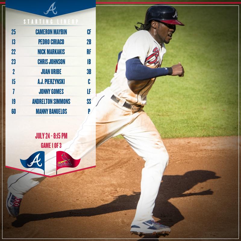 @Braves tweeted: After a day off, the #Braves take on the Cardinals in St. Louis at 8:15 ET. Lineup: